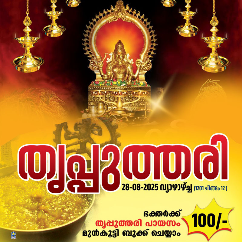 ഭക്തർക്ക് തൃപ്പുത്തരി പായസം 100 രൂപ മുൻകൂട്ടി ബുക്ക് ചെയ്യാം.